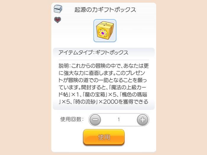 | ⑦本日の冒険クエストクリア回数と追加報酬 冒険クエストを1日4回クリアするとボックスが開封し、「時の流砂」×500を獲得できます。 |