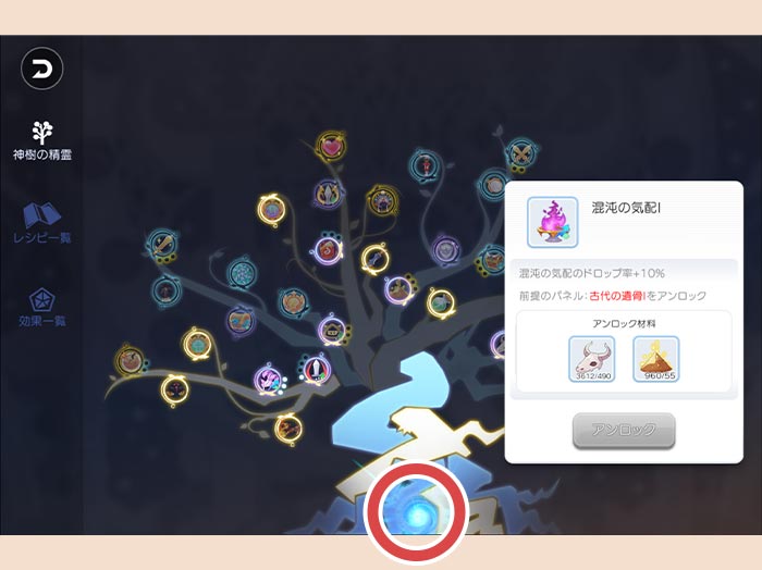 混沌の気配:集めると「氷雪地帯」の建物で能力アップが可能!