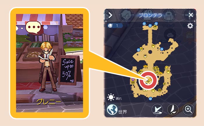 ⑥ヒントNPC NPC「探索者」に話しかけ、Zenyを支払うことで、荒れ地で発生するイベントやモンスターなど、様々な情報を教えてくれます。 ※一部、「4次職アップデート」第2弾で実装されるマップの情報も出現いたします。 |