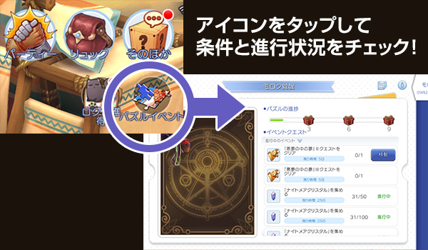 「モロク覚醒」イベントに関連する様々なイベントクエストをクリアしてパズルのピースを手に入れ、パズルを完成させましょう!ピースを開放すると数に応じて報酬をゲットできます。