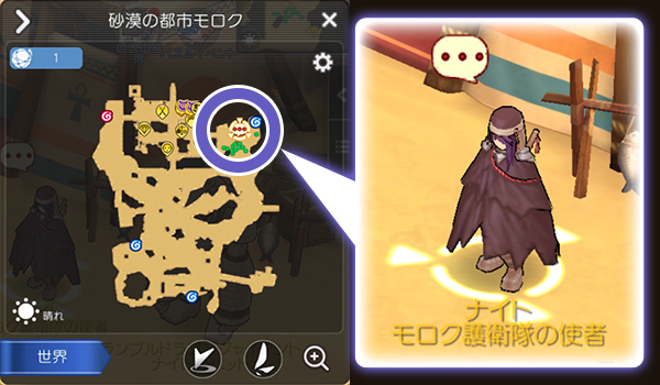 砂漠の都市モロクで魔王モロク復活を企むカルト組織の計画をコンチネンタルガードが察知!砂漠の都市モロクにいるNPC「ナイト」に話しかけて計画阻止の手助けをしましょう!