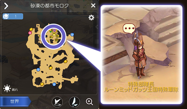 砂漠の都市モロクにいるルーンミッドガッツ王国特殊軍隊の「特殊部隊長」に話しかけて報酬の「ゴールドブレイブ宝箱」を受け取ろう! ![]()