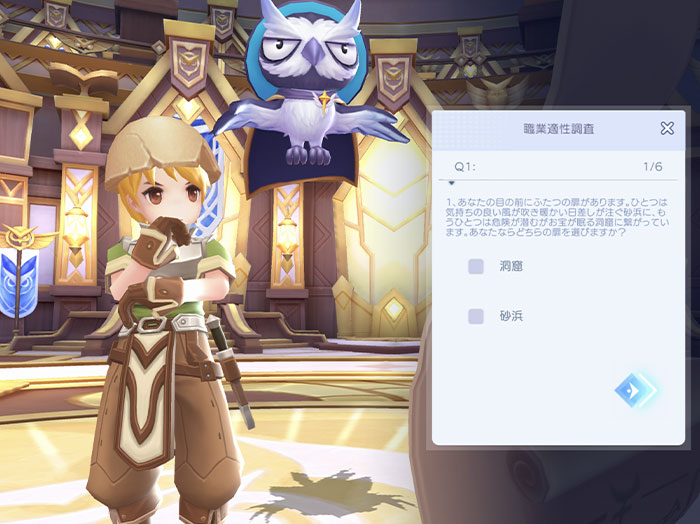 簡単なチュートリアルを終えたあと、特別プログラムを受けるとBaseLv.120、コラボ職業を除くいずれかの職業の3次職JobLv.60にレベルアップすることができます。また、選択した職業のタイプに適した装備アイテムをもらえます。