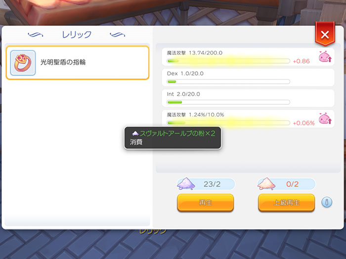 | 各装備アイテムをグレードアップできるチケットもあります。 |