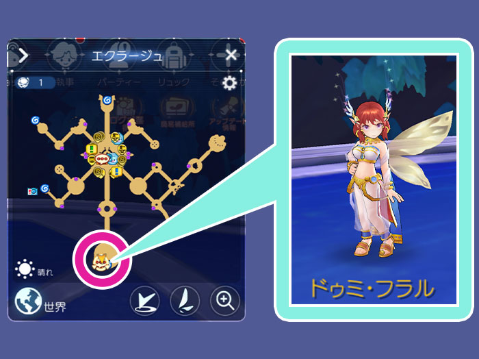 ダンジョン内で出会い、仲間になる「リプル」はダンジョン内の宝箱や「花が咲き始めた大地」のモンスターがドロップするアイテムを消費することで強化・育成することができます。リプルは「花が咲き始めた大地」でも一緒に戦ってくれます。