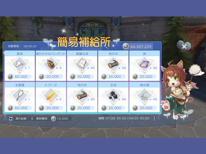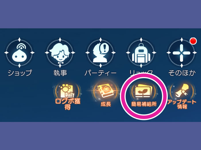 メイン画面のアイコンに「簡易補給所」が登場。様々な素材や一部の武器をZenyで購入できます。価格は簡易補給所専用の価格です。販売ラインナップはランダムで一定時間ごとに更新されます。Zenyを消費することでラインナップを更新することもできます。