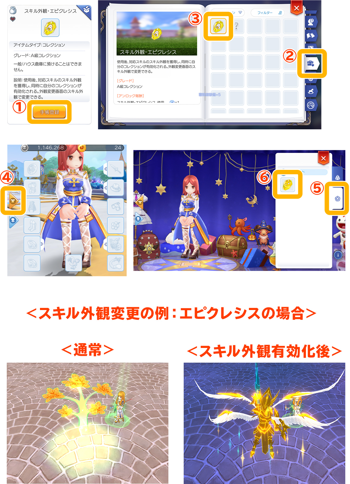 ①獲得したスキル・特殊効果の外観アイテムを手帳登録する