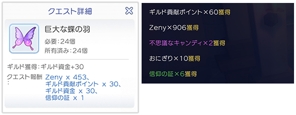 ②ギルド寄贈報酬2倍によって増量した分の「信仰の証」(消耗品)